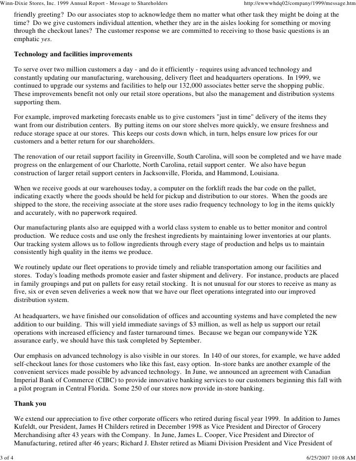 Winn Dixie Stores 1999 Annual Report